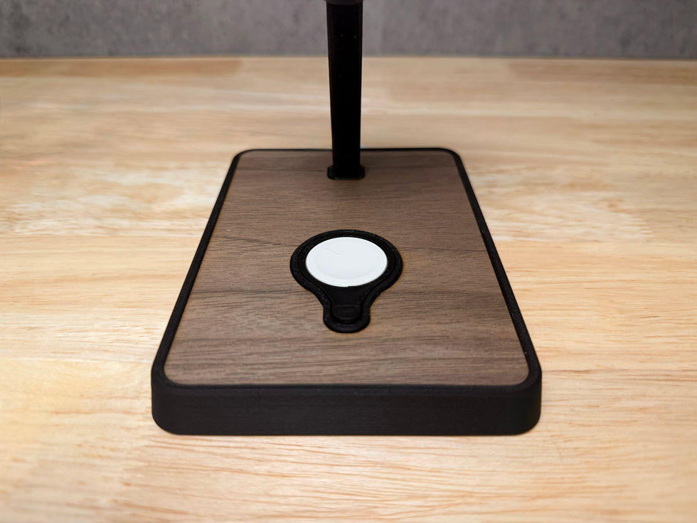 The Carbon Grain iPhone Dock blends futuristic form with natural material, combining carbon fiber black PLA and a black walnut wood top for a satisfying contrast in both look and feel. It’s designed for makers who appreciate good design, clean cable routing, and a rewarding print. This stand supports both iPhone (MagSafe) and Apple Watch chargers, organizing your daily tech with a sculptural footprint that looks right at home on your desk or nightstand. You’ll enjoy tight tolerances, well-thought-out geometry, and a friction-fit or insert-ready wood top. Other material and color combinations were developed including birch wood, gloss black acrylic, carbon fiber, and black leather.